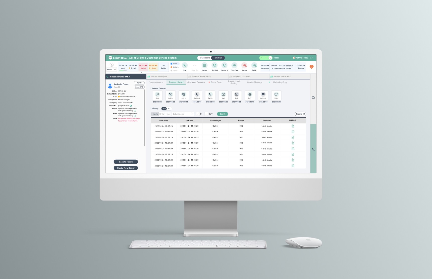Address the need for users to access customer information, record contact details, and create notifications efficiently within a single platform.